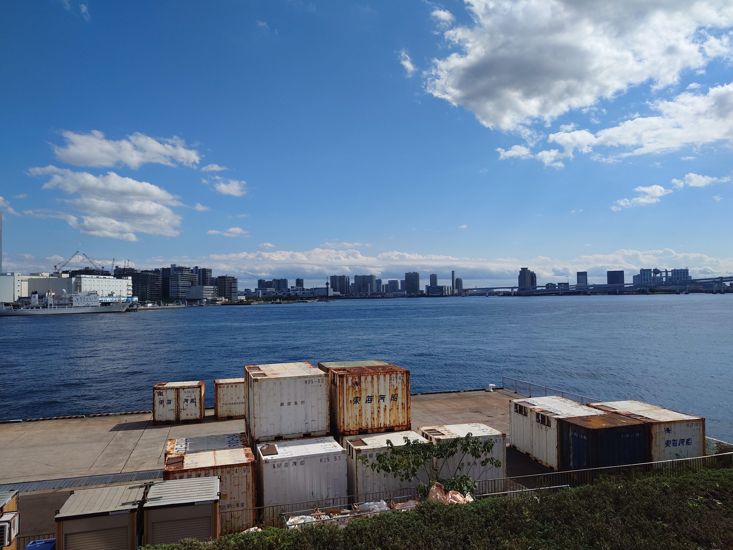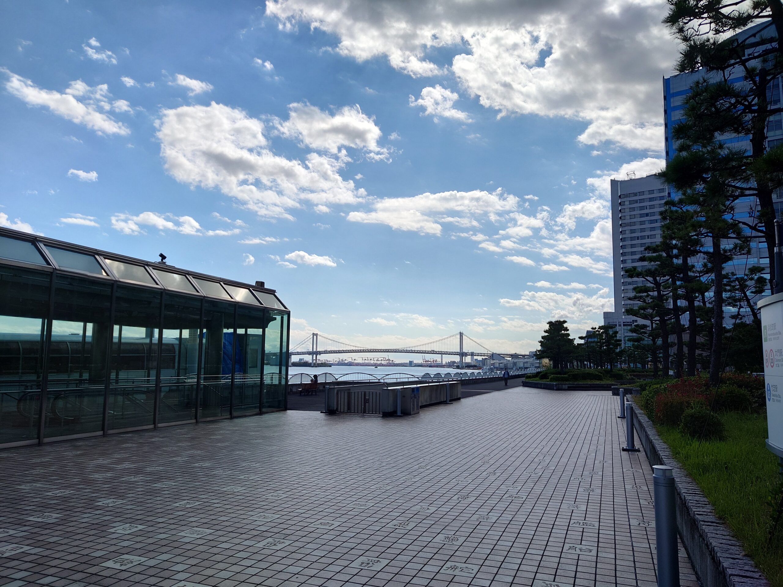 竹芝客船ターミナル 中央広場 2023.10.21 2023/10/21(土)に撮影。竹芝客船ターミナルにある広場で船に乗らなくても入ることが出来る。とても開放的。少し遠くにはレインボーブリッジが見える。 ↓ は東京港埠頭株式会社のホームページです。 https://www.tptc.co.jp/terminal/spot/takeshiba