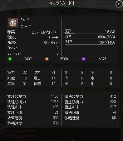 フルバフには程遠いので、あまり違いは大きくないですが盾装備だけで防御力が57アップw