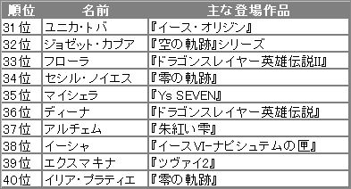 ・ユニカが31位かー、と。オリジンの主人公って意味ならトールのほうがたぶん人気ありそうな予感。