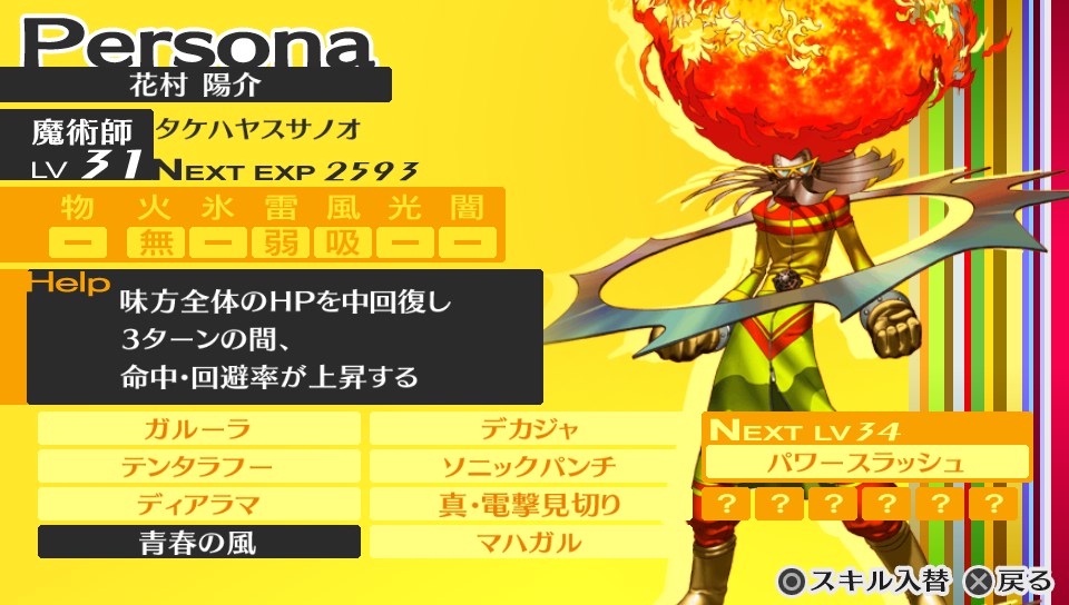 完二のスキルとかしょっちゅう外れるので微妙…直斗の正義の盾や雪子の華焔(全体火炎攻撃)とかがかなり使える。