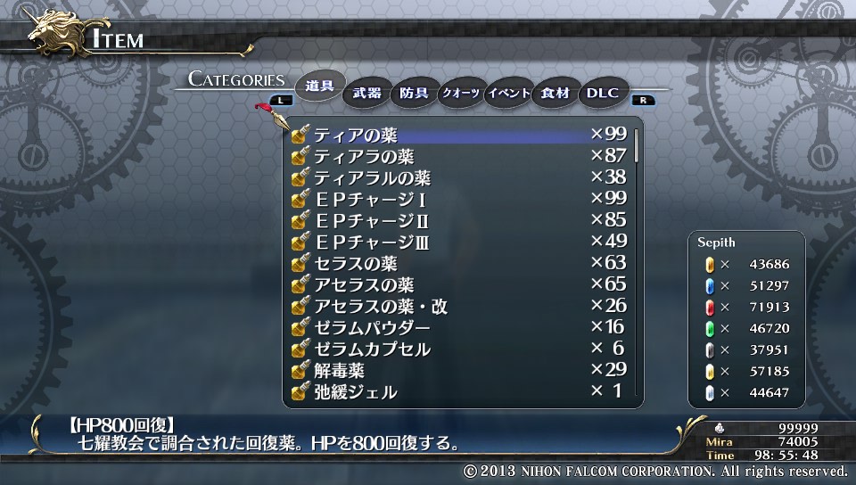 今回は比較的楽? 閃の軌跡1、2、3、4 2013.11.17 第6層でがんばるだけだった。 おまけ いろいろいるけど、 ガイウスがなんだかんだで良いキャラですね。 一部の人だけだけど、今回は明るめで見ていてスッキリするね[emoji:i-185] 塊は99999が最高らしいが、こんなにためても意味はあるのか。 次回作へも引き継げないでしょうし…。 今回は2周目以降の変化が少ない? ふぅ。