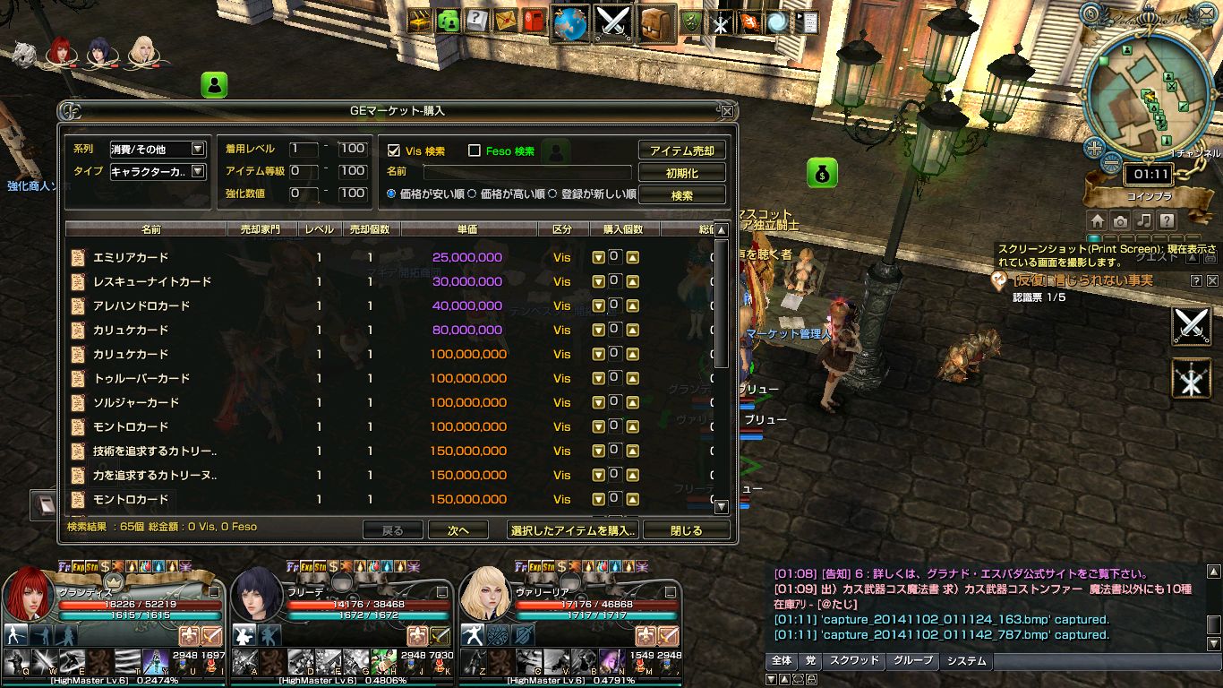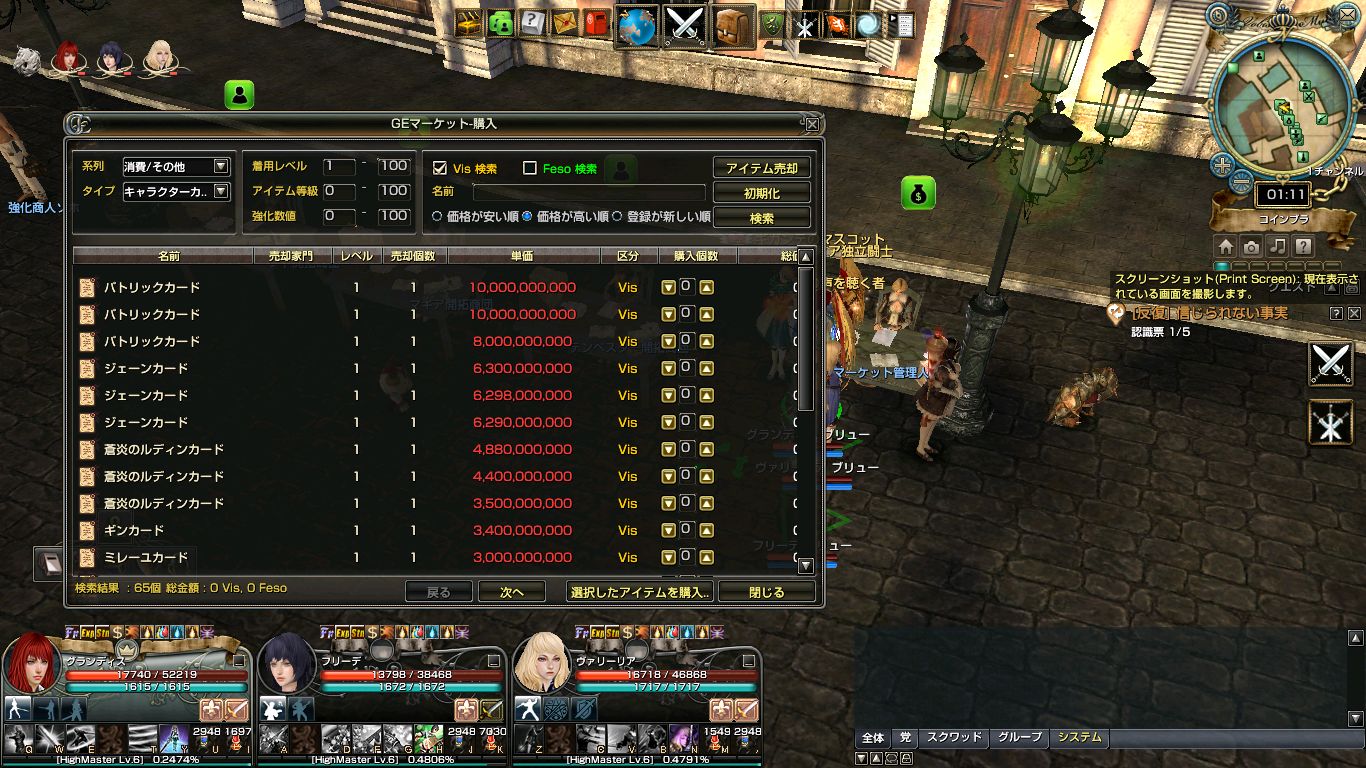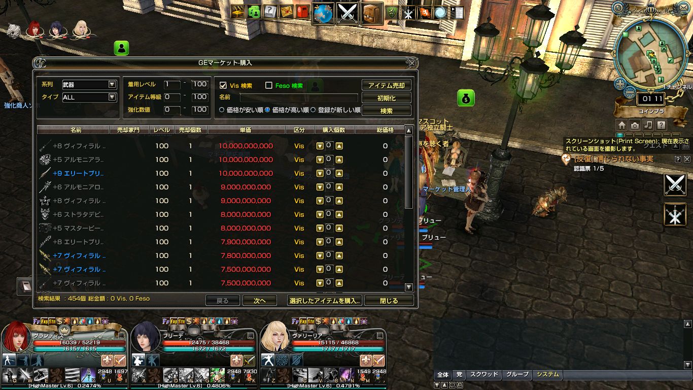 一番上のはやはり100億。40等級以上の武器がマーケットにならんでるけど・・・。