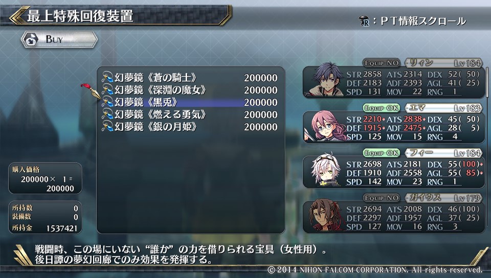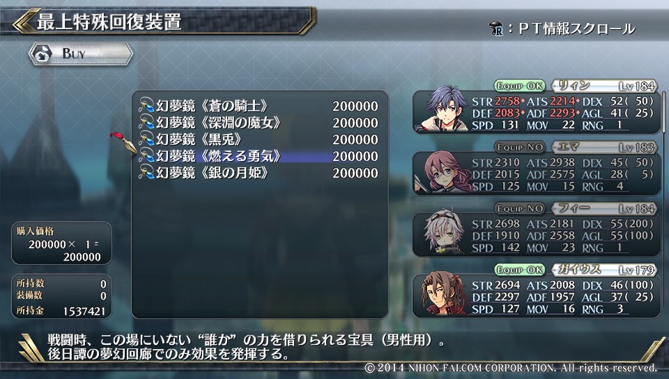 買えるアイテムは5種類。一個二十万ミラするってのは予想外だけど・・・w