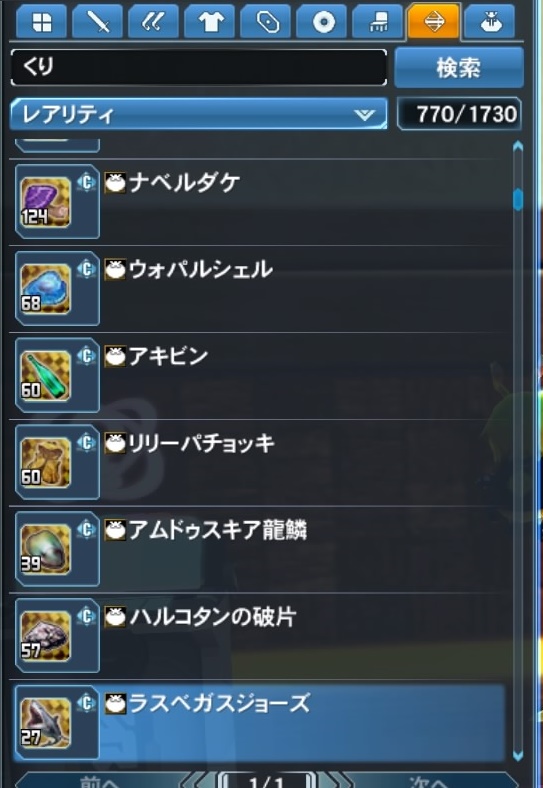 PSO2 ヤーキスさんクエスト スムーズに倉庫から取り出す方法 PSO2・PSO2es 2018.02.18 方法というほど大げさなものでもないのですが、単純に探すと面倒だったので。 フランカのカフェにいるヤーキスさん。 届け物をするだけで毎週60万メセタをくれる人で声もフリーザさんという大物です。 ファンタシースターオンライン2_20180218081820 ファンタシースターオンライン2_20180218081826 倉庫から取り出してくるわけですが、右から二つ目のカテゴリへ移動したら、レアリティで並べ替えるとなぜか綺麗に並んでいた。 ファンタシースターオンライン2_20180218081805 みんな気づいてそうだけど、気づいていない人は確認してみてはいかがでしょう。