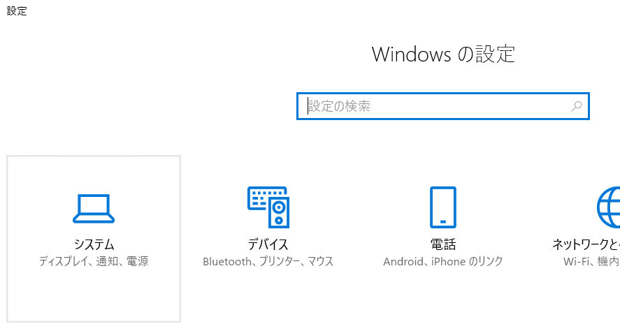 ② Windowsの設定でシステムをクリック。