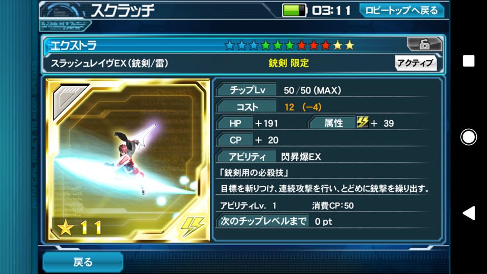 2年くらい前に出てたら、活躍しどころがありそうですが、肝心の内容は属性強化と追撃(100%)なんですよね。