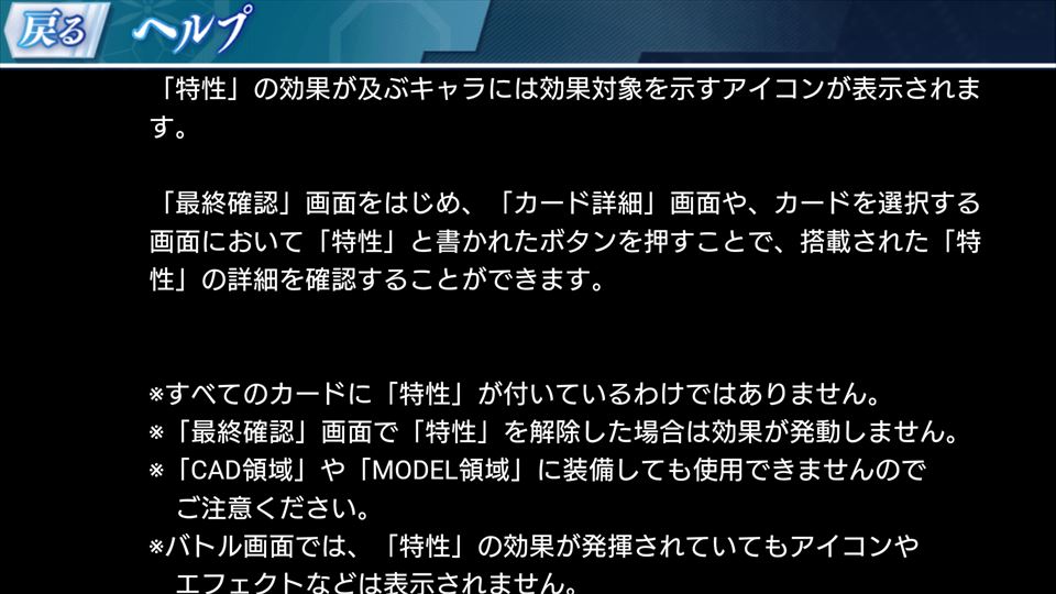 カードによっては特性という能力が付与されているのですが、今までこれはパーティーメンバー全員分の特性が、自動で全て発動されるんだと勝手に理解していました。
