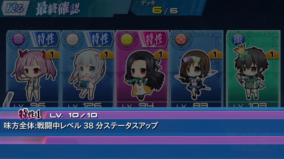 上記のように紫色になっているメンバーの特性が発動するようだ。(一度選ぶと記憶してくれるらしい)