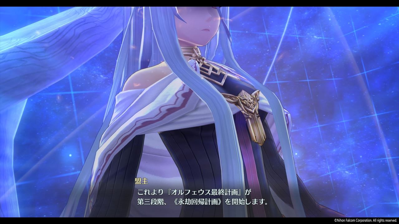 ちなみに、空の軌跡3の星の扉14でオルフェウス最終計画の第二段階、幻焔計画の開始宣言がなされたけど、今回は「永劫回帰計画」だそうだ。