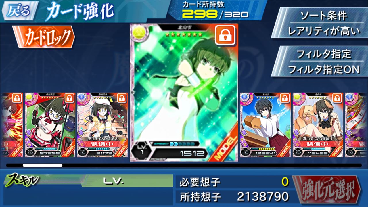 魔法科LZ カード強化画面のフィルター 魔法科高校の劣等生 LZ 2019.01.14 いまさらなんですが、このフィルターってand条件ではなくてor条件なんですね。言い換えれば、タップした条件全てを満たすカードをフィルターするのではなく、いずれかの条件を満たすカードを表示する・・・。 最初特殊効果打ち消しだけをいれていて、全体攻撃ないのかなーと思い、 複数攻撃を入れてみた結果、 あ、あれ。雫は複数攻撃可能だけど、特殊効果打ち消しはありません。いや、こんなたくさん雫が出てきても違うでしょ、ってすぐわかるw そもそも、andかorなんて選べたっけ🐑選べるなら便利なんだがなー。。