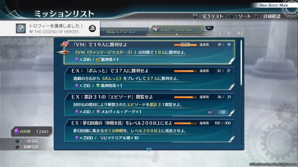 創の軌跡 トロフィー100% 創の軌跡 2020.10.18 そういえば少し前だけど、ようやくトロフィー100%(プラチナ)に。VMがやっぱツラいですね。。次作以降では実装しないでくれ、とまでは言わないけれど、もう少し工夫してほしい感はある。登場人物がここまで多いと徐々に作業感が出てきてしまいますからね~。 英雄伝説 創の軌跡_20201011100625