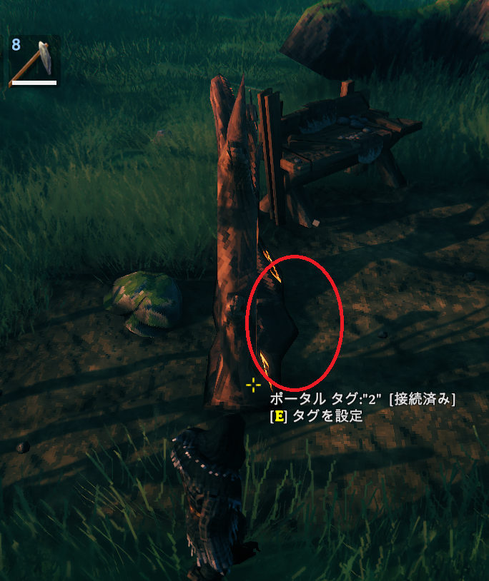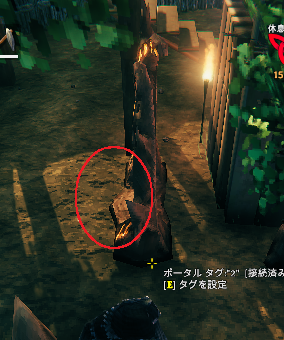 Valheim ポータルの向き Valheim 2022.03.19 凄いいまさらなんだけど、これ、向きがあるんですね。何も考えないと壁側にでてしまったりしてしまう。わかりにくいが、下の絵で下がポコッと出ている方向にワープ後出てくる。