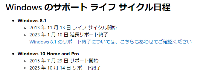 Windows 10 Home and Pro 2015 年 7 月 29 日 サポート開始 2025 年 10 月 14 日 サポート終了