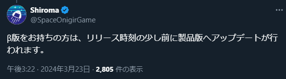 ShadowCorridor2 発売時間 2024/3/29 AM9:00 JST ホラーゲーム 2024.03.23 発売時間は0時かと思いましたが、違うようです。発売後1週間は割引されるようなので購入するなら狙い目ですね。 #ShadowCorridor2#シャドーコリドー2Shadow Corridor 2 雨ノ四葩リリース日時:3月29日 AM9:00(日本時間)発売後1週間はローンチ割引でお安くなります。価格はリリース時にストアページでご確認ください。https://t.co/qAkBpwNfif— Shiroma (@SpaceOnigirGame) March 23, 2024 画像版は以下。 β版を持っている場合は発売直前に製品版にアップデートされるそうです。 金曜は休めないから帰ったらじっくりプレイするか~。