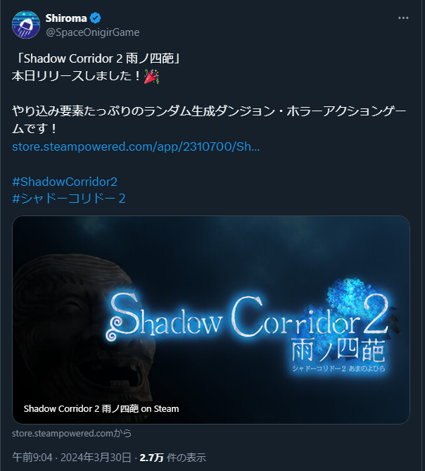 https://store.steampowered.com/app/2310700/Shadow_Corridor_2/?l=japanese