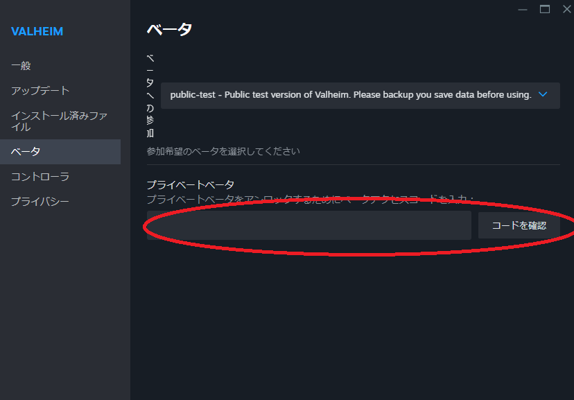 3. プロパティ画面の「ベータ」を選び、コードに「yesimadebackups」を入力する。