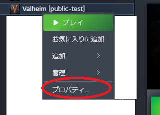 2. ゲーム一覧でValheimを右クリックし、プロパティを開く。