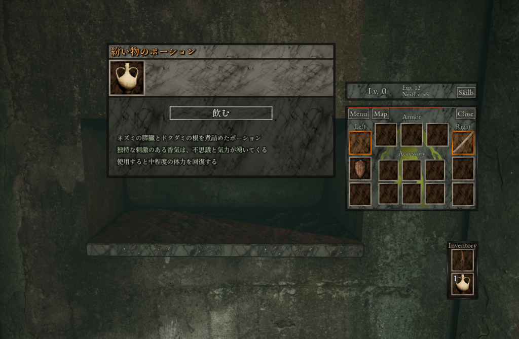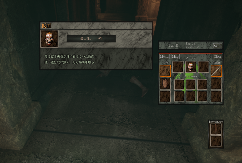難易度下げてみたけど、ゴリ押しで突破はかなり困難を伴う。さらに言うと、敵とすれ違えるわけではなく、敵がいればその場所を通過して奥へ・・・というのも出来ないので、場所によっては追い込まれてまずいことになる感じ。