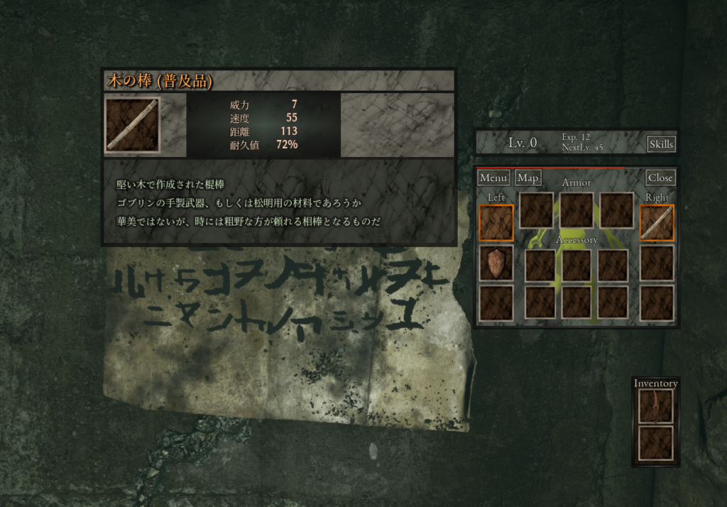 画像以外に拾ったアイテムを見ると、最初から80%だったりするが、敵の体力が多いせいで意外とする壊れてしまうのが厄介ですね。