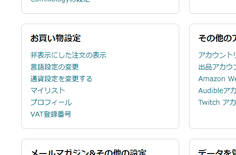 Amazon 本 フォローした作者を確認する方法 知識 2024.06.08 Amazonで本を探していると作者の方をフォローする時がありますが、誰をフォローしたのか確認する方法がとても分かりにくかったのでメモ。 アカウントサービスを選択する アカウントサービスを選択する。 お買い物設定にあるプロフィールを選択する フォロー/購読項目を選択する まぁ、これを使うくらいなら欲しいものリストでうまくやりくりした方が良いかもしれませんが、もうちょっと分かりやすいUIにしてほしい気がします。