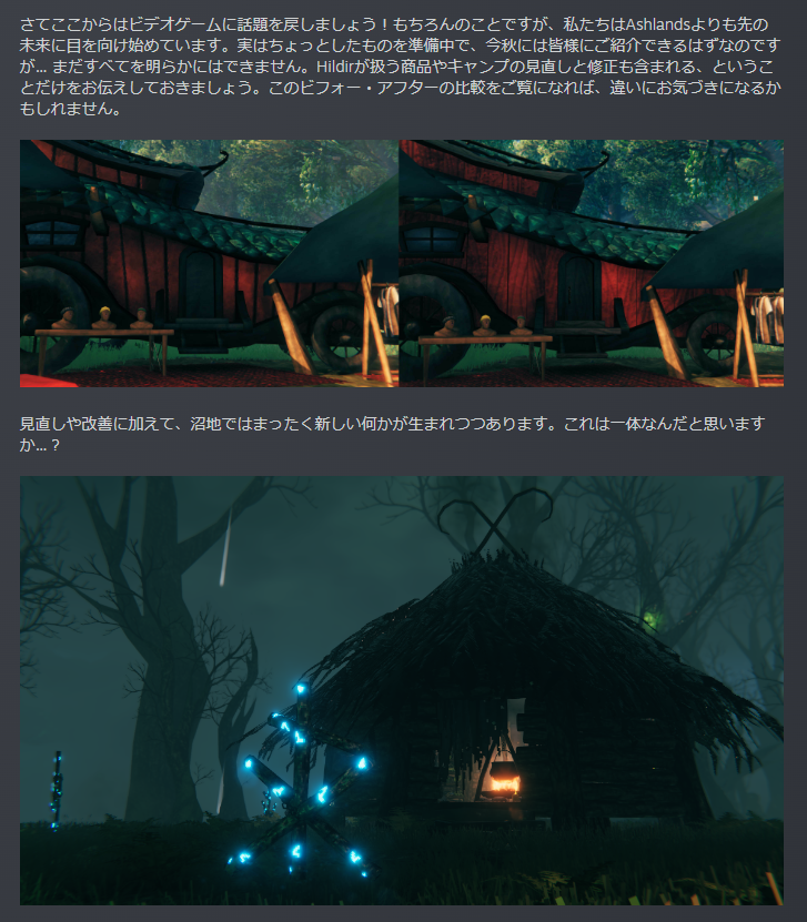 沼のはシールド的なものか、何かの補助装置みたいなものなのかなぁ。ただ、複数個置いてるのはValheimらしくないですね。あとはアンデット対策みたいなものなのか。