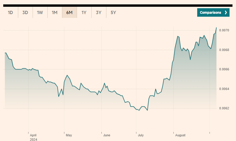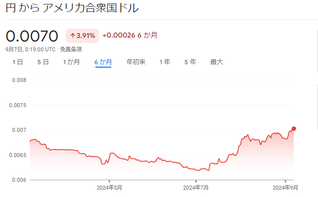 1円0.0070ドルってことかな。これだと1ドル142.85円くらいだろうか。