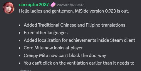 1/7頃にアップデートされてた模様。といっても、Steamには情報が上がっていないようでゲーム内(バージョン表記のみ)とdiscordで情報あり。