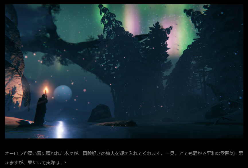 Valheim 極北情報 2025/1/29 Valheim 2025.01.31 ごく僅かですが、極北情報が来てました。灰の地と比べてどうかはわかりませんが、やはり極北もそんな静かな場所ではないのかな。それにしても高さがある木が生えてるけど、全く違う場所に見えますね。灰の地も霧の地も実装前は丸坊主で実装後はガラッと印象が変わったから、本実装になったら流氷とかもどうなるかわかりませんね(今の極北は夕日が綺麗と流氷のイメージ)。 Valheim