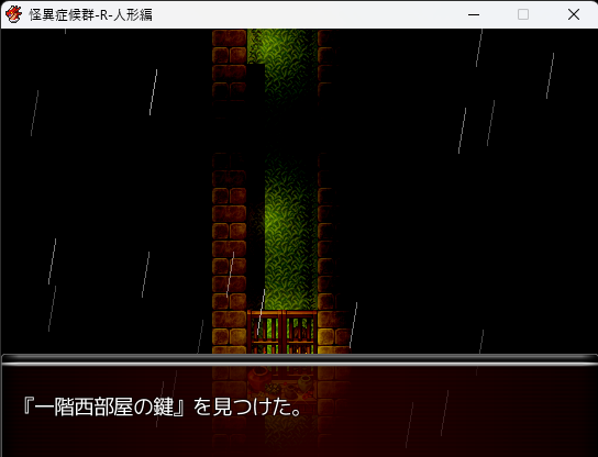 - 道沿いに進むと「一階西部屋の鍵」を入手。