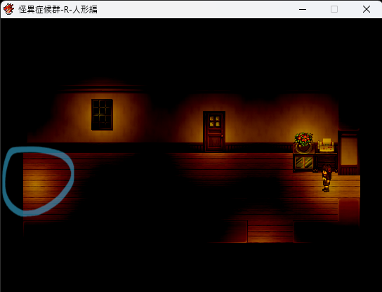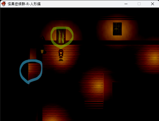 - 廊下が暗くなった後、外へ出るために裏口へ向かう(下図参照)。