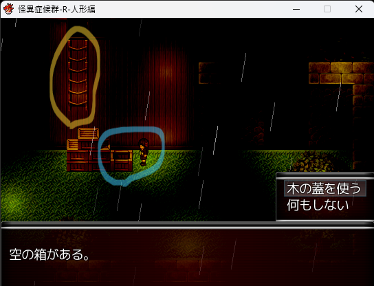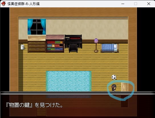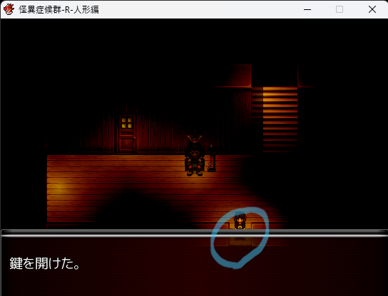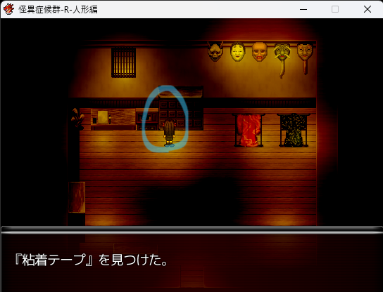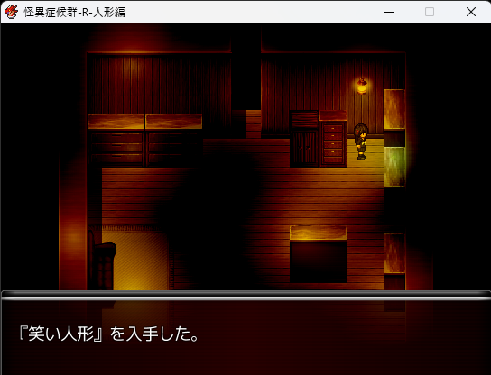 - 電池を持った状態で再び物置の右上を調べると「笑い人形」を入手。