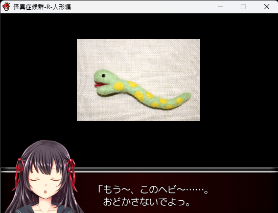 - 笑い声がした後、更に右上棚を調べると、ヘビのおもちゃが出てくる。