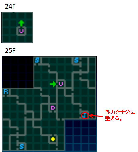 - 少し使いづらいが、25Fのショップ、回復、邪教の館があるので活用する。