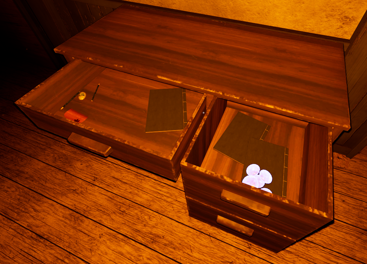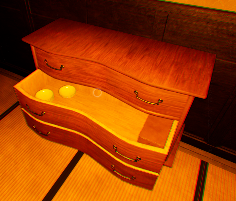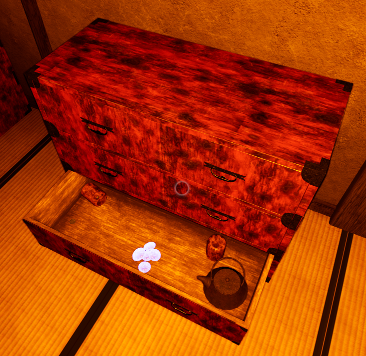 アイテムがあるかどうかは開けた瞬間に判定されるため、開けていない箪笥を千里丸で見ても何も見えない。