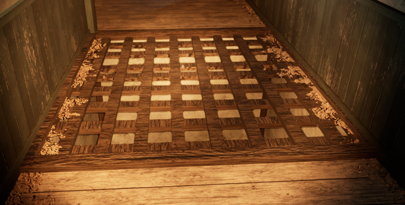 床が格子状になっている部分がある。二度目に踏むと、床が抜けて落下する。