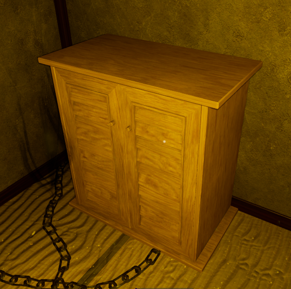 ◆小テーブル、壺、引き戸の書庫、小さな樽、オルゴール、姿見