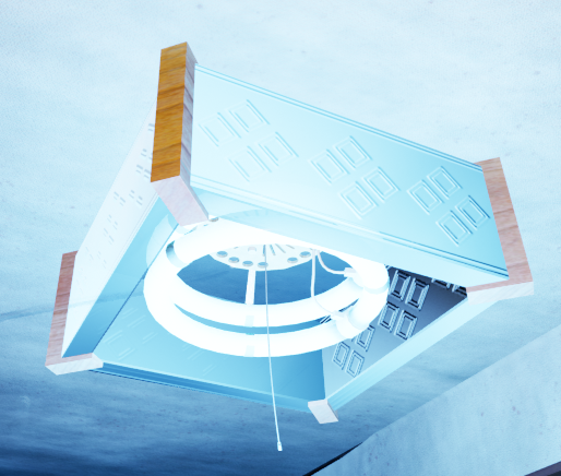 ガラスの窓のようなものがついているが、立っていても徘徊者には見えず、徘徊者側の視界を遮ってくれる。