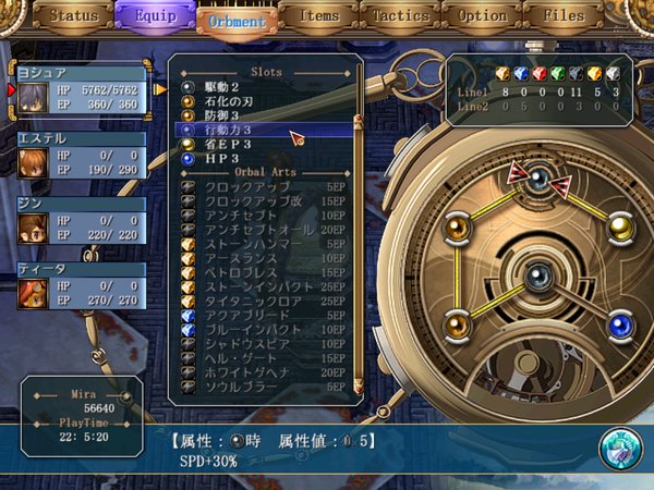多分体力的にも力的にはアーツ的にもこれ以上は攻撃性を高められませんね; でもこれでこそヨシュア!(笑) ちなみに行動力3のクオーツはかなり役立ちます。 さぁ会話だけのエステルたちと共に中へ(*´∇`*)